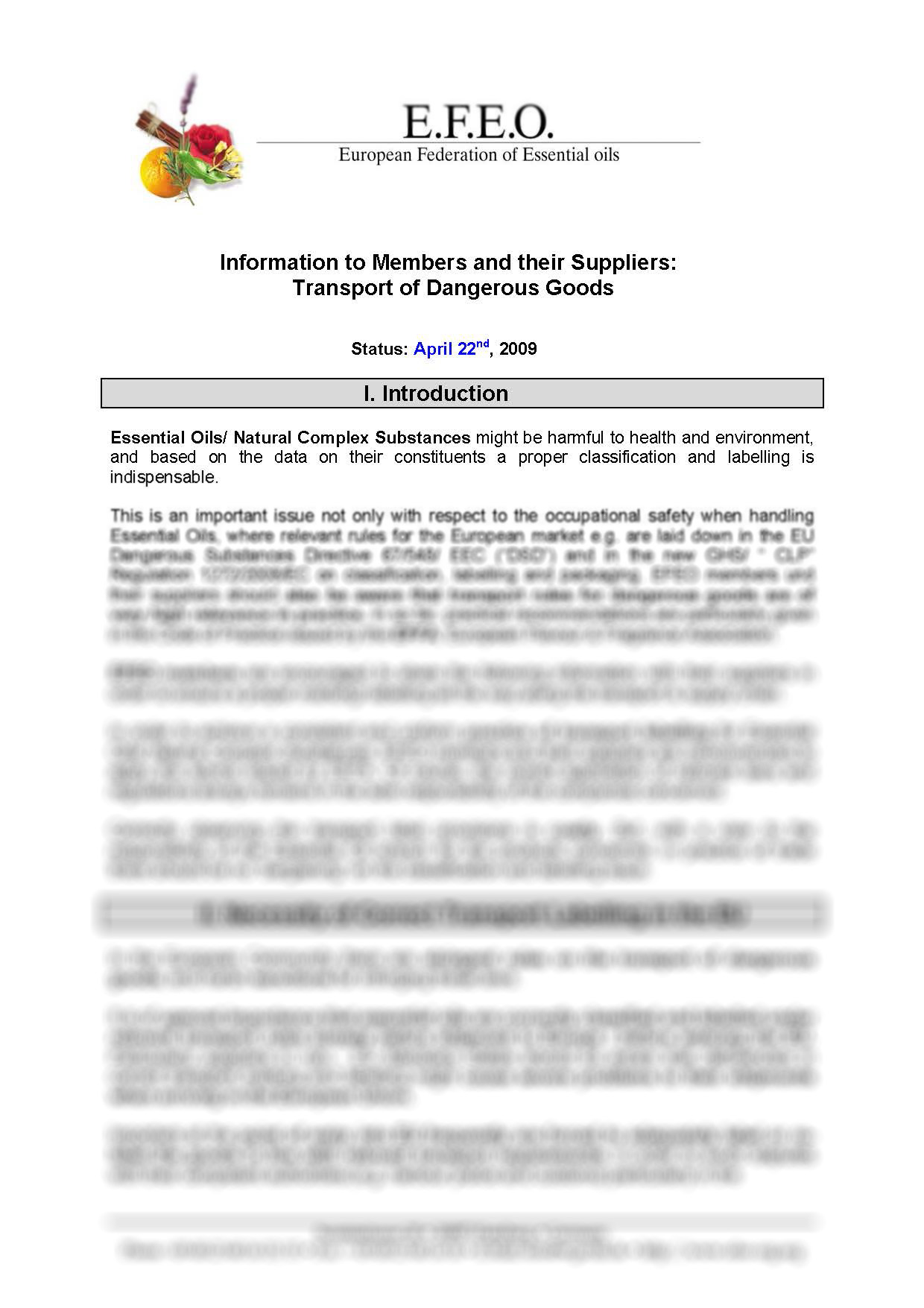 EFEO guidelines on Transport of Dangerous Goods 2009