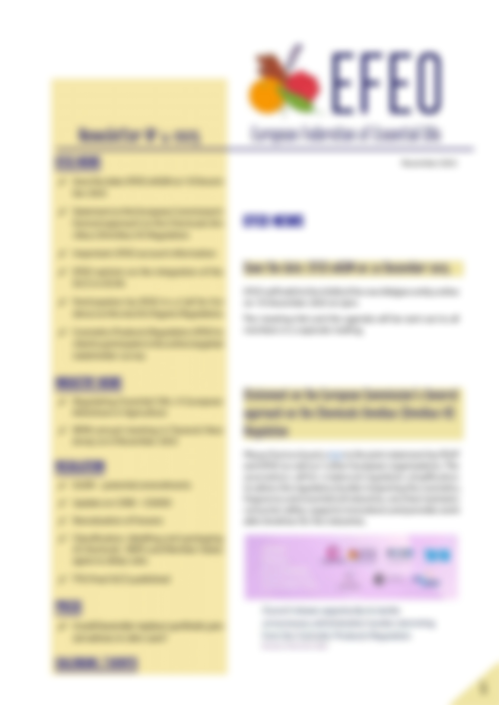 EFEO is a reliable partner in discussions with the European Parliament and Commission as well as ECHA and national authorities for all questions relating to Essential Oils, whether allergens, REACH, CLP, CITES, CSS, etc
